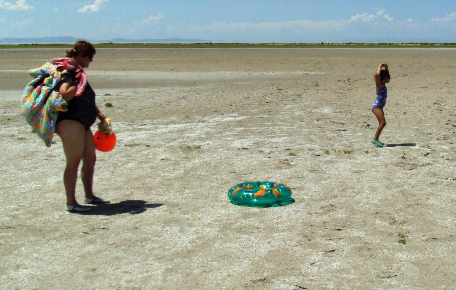 The water had evaporated even more and it was a very long walk (I bet it was at least one mile from the beach to the water) This is one of my favorite pictures of Jenna and my sister entering the water