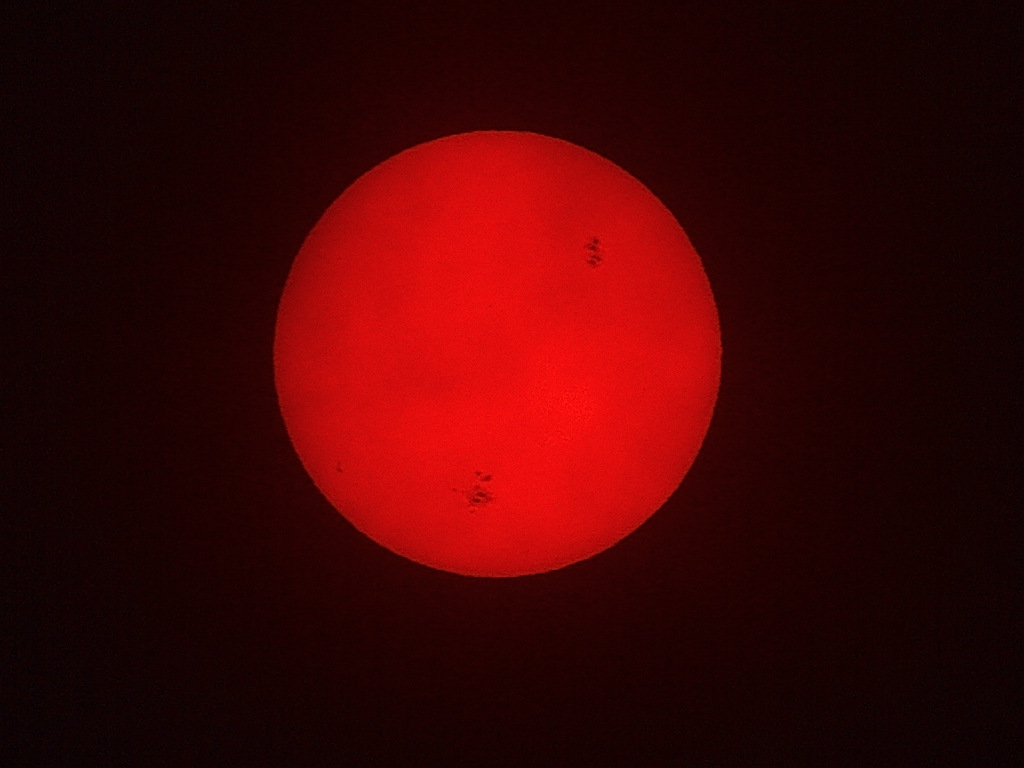 brilliant red ball hanging in the sky.