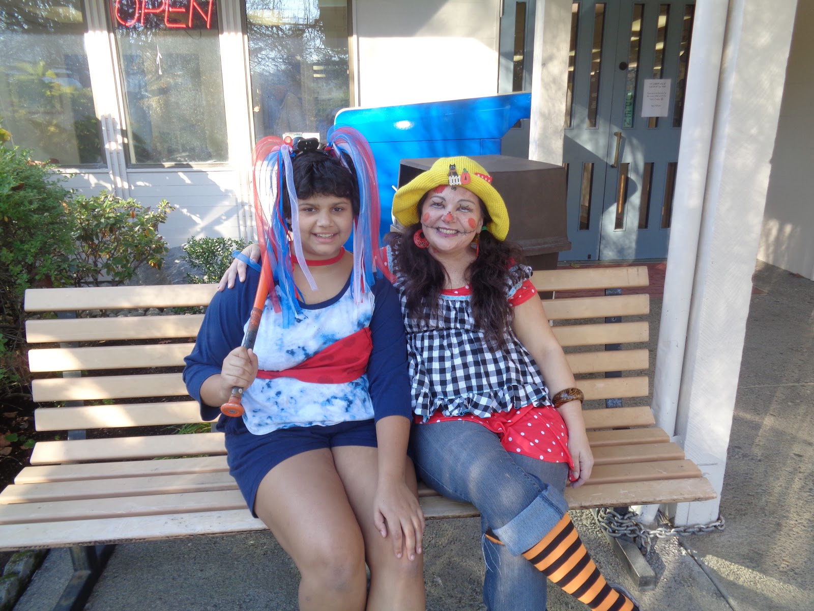 I did not take as many pictures of trick or treating this year as I had the first year that we had moved to Myrtle Creek. The library was supposed to offer a party from 2-4 before the trick or treating even started. I couldn't understand why it had been planned so early as the majority of school kids don't even get out of school until after 3:00 (middle school are the first to go to school, and then the high schoolers and then the elementary - and returned home in the same order)
