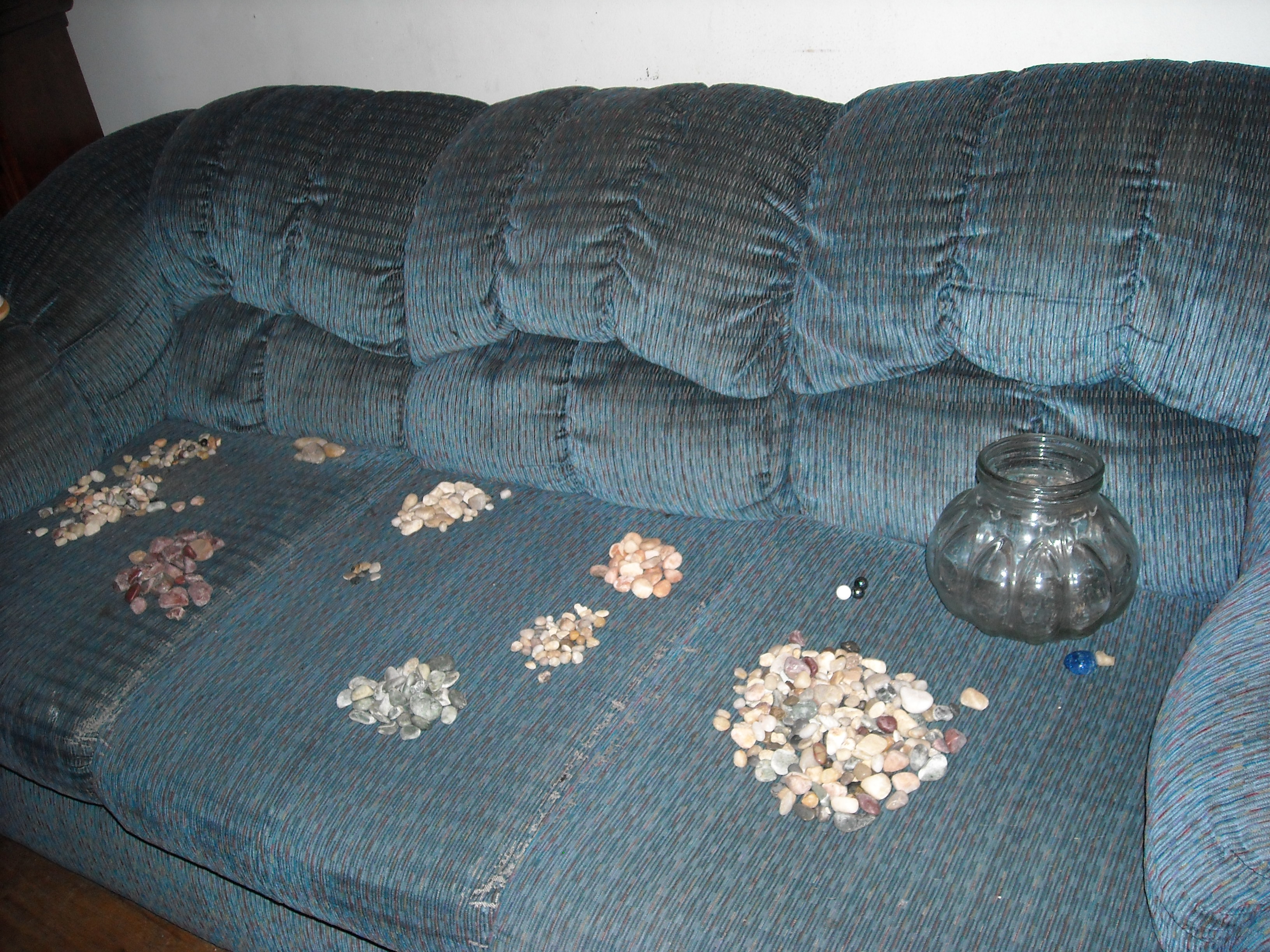 After we had moved to West Valley Jaime had gone next door to assist the neighbor with some light chores and came home with a large jar full of rocks – which again she separated into piles. I remember taking several pictures of her enjoying her treasures which she had strewn across the couch. This is the only pic I can find and she's not in it